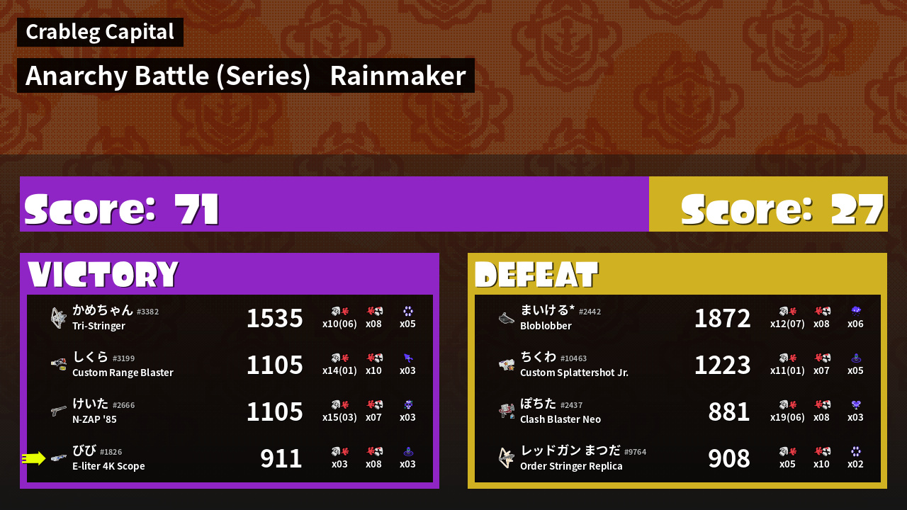| Mode | Rainmaker - Anarchy Battle (Series) | ||