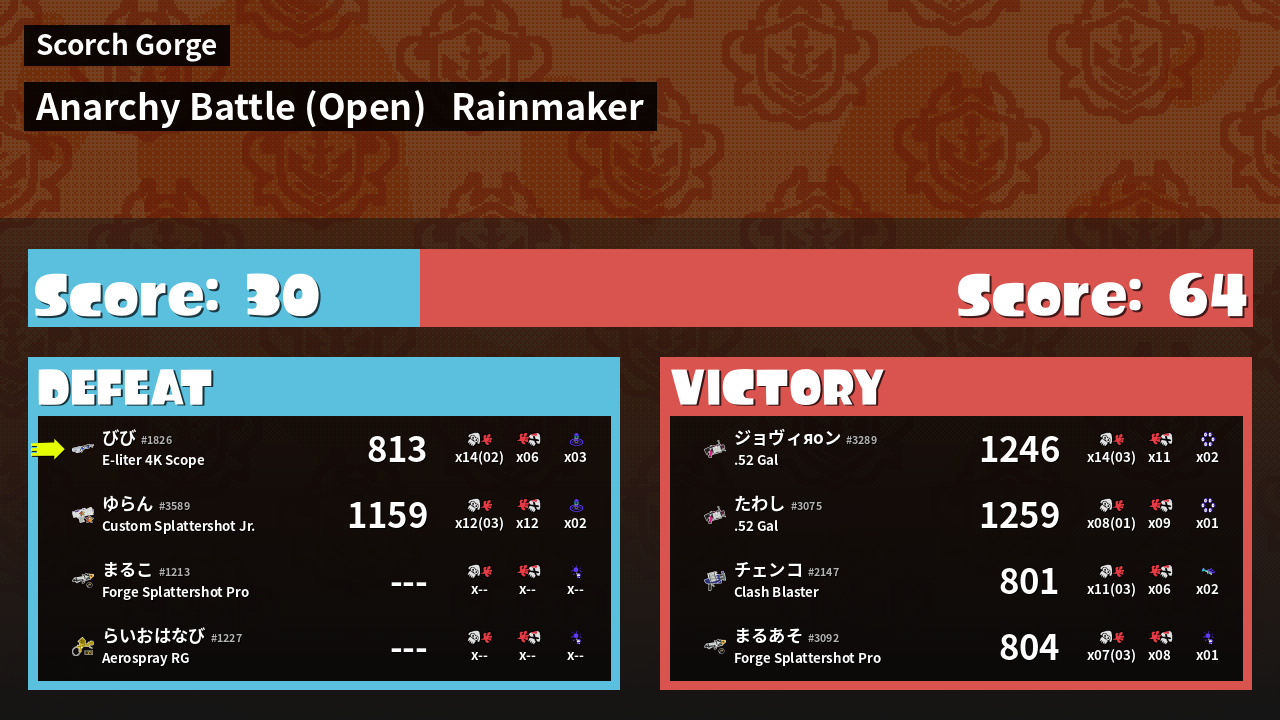 | Mode | Rainmaker - Anarchy Battle (Open) | ||