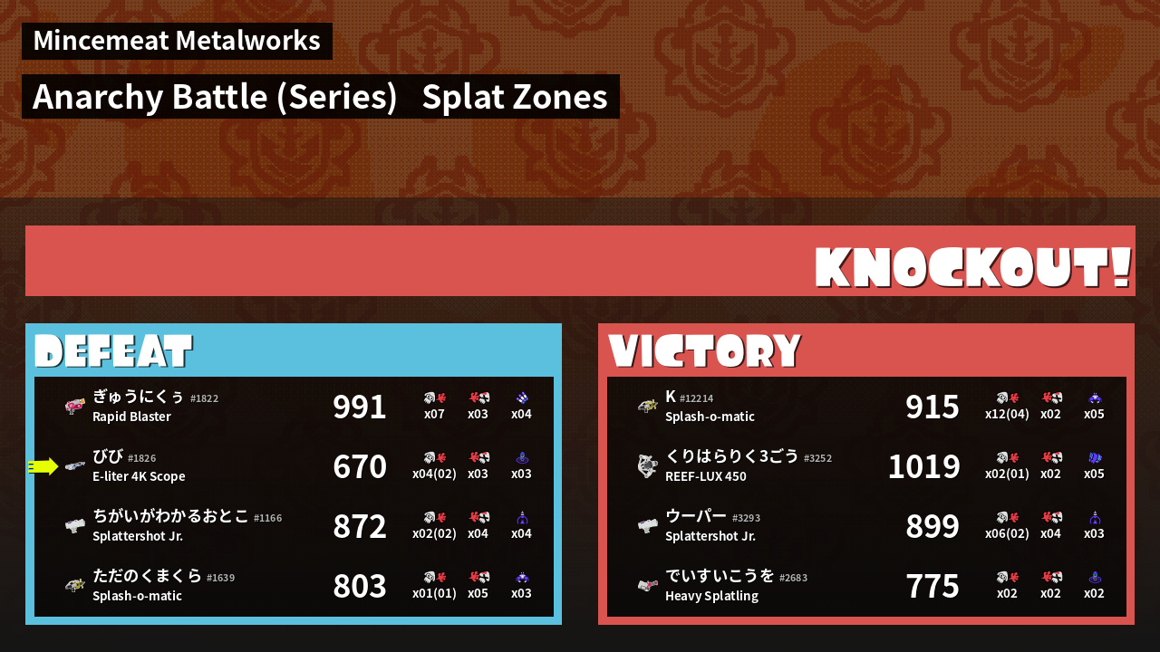 | Mode | Splat Zones - Anarchy Battle (Series) | ||