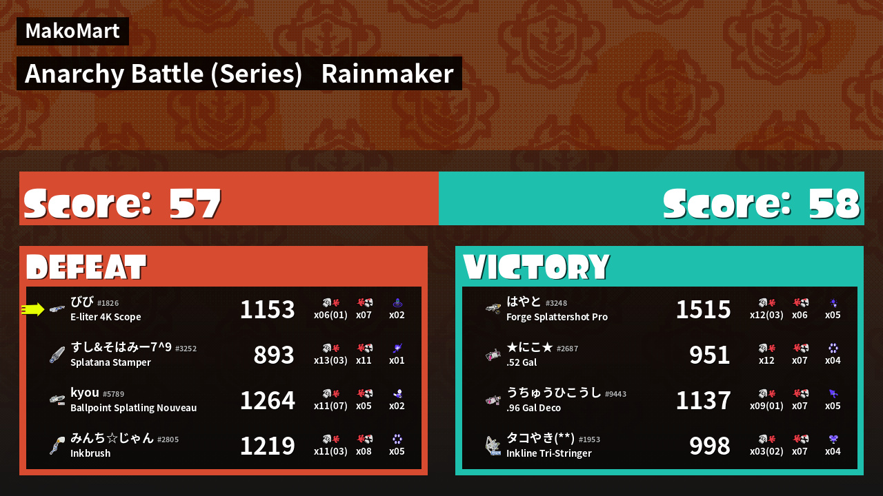 | Mode | Rainmaker - Anarchy Battle (Series) | ||