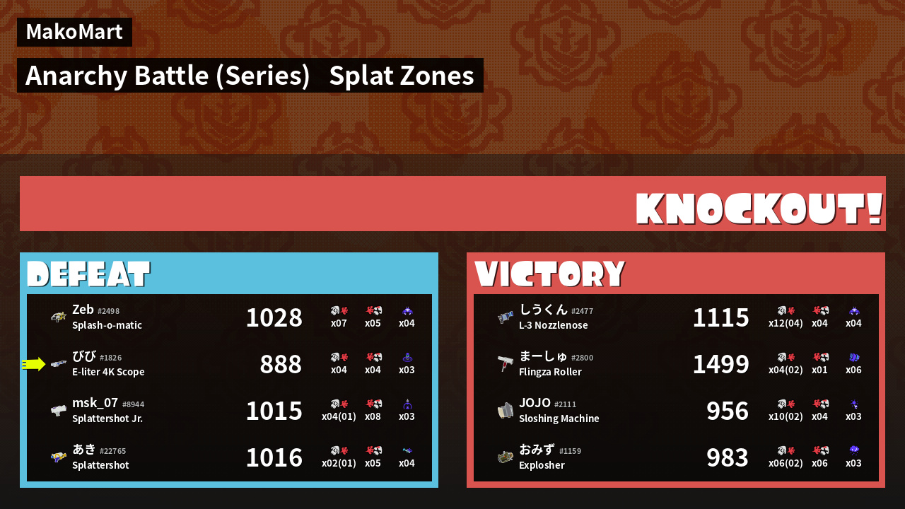 | Mode | Splat Zones - Anarchy Battle (Series) | ||