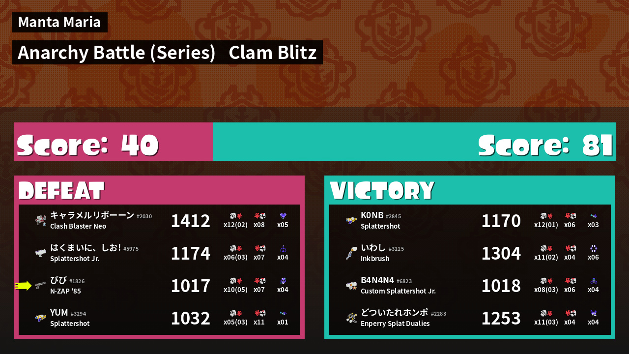 | Mode | Clam Blitz - Anarchy Battle (Series) | ||