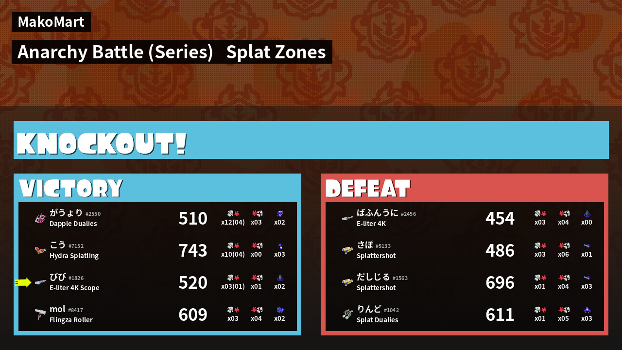 | Mode | Splat Zones - Anarchy Battle (Series) | ||