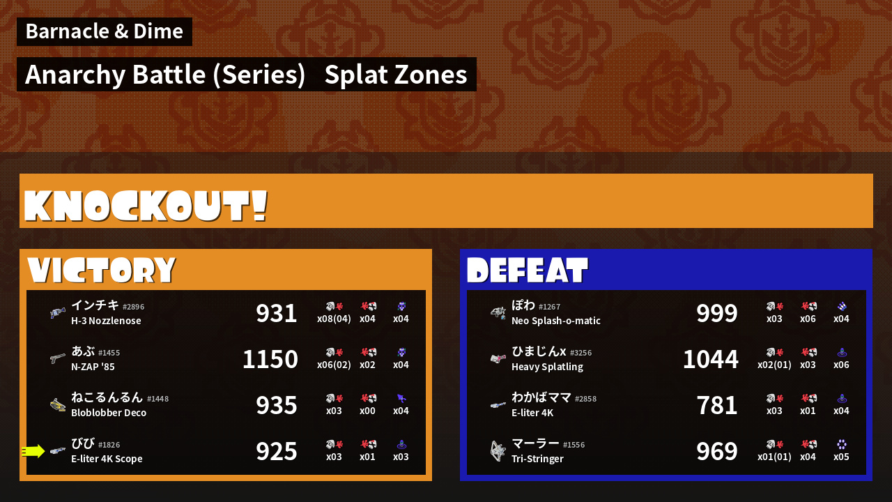 | Mode | Splat Zones - Anarchy Battle (Series) | ||