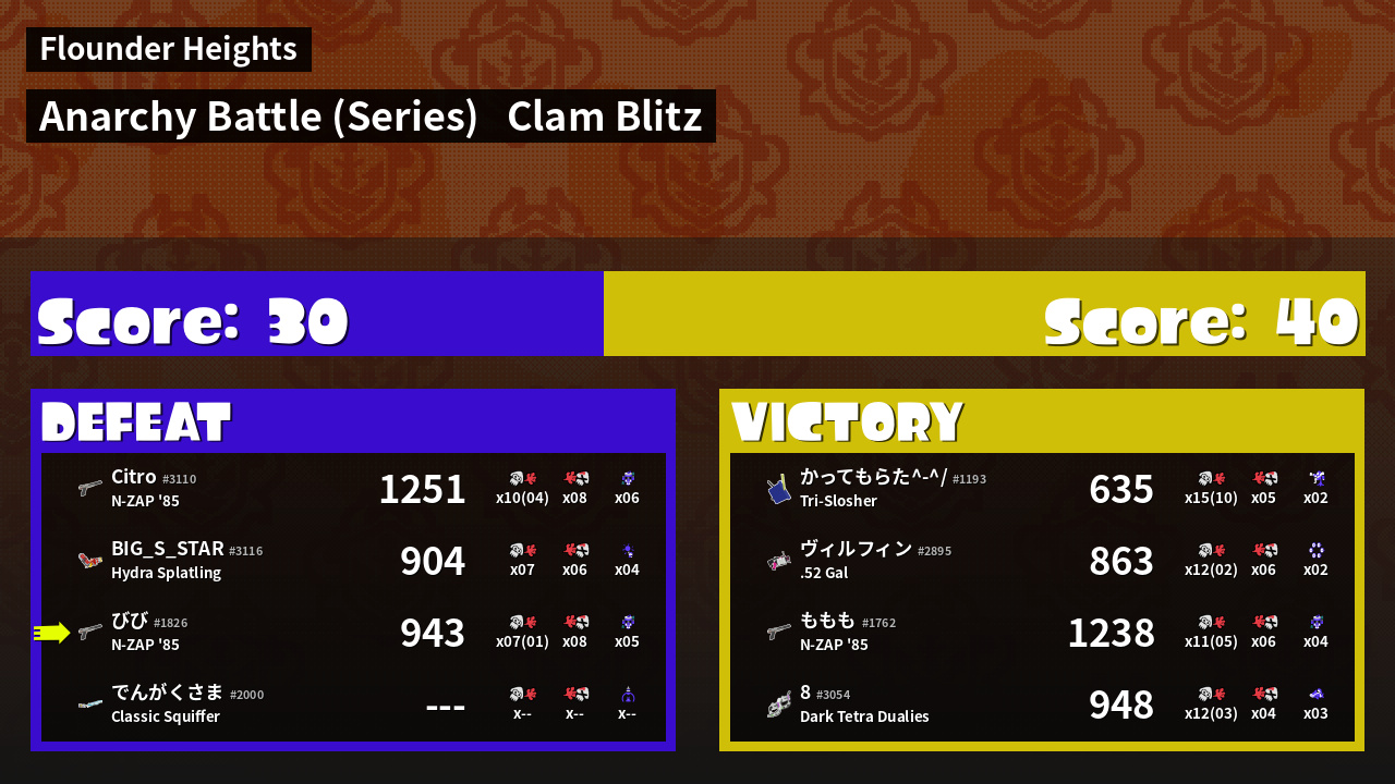| Mode | Clam Blitz - Anarchy Battle (Series) | ||