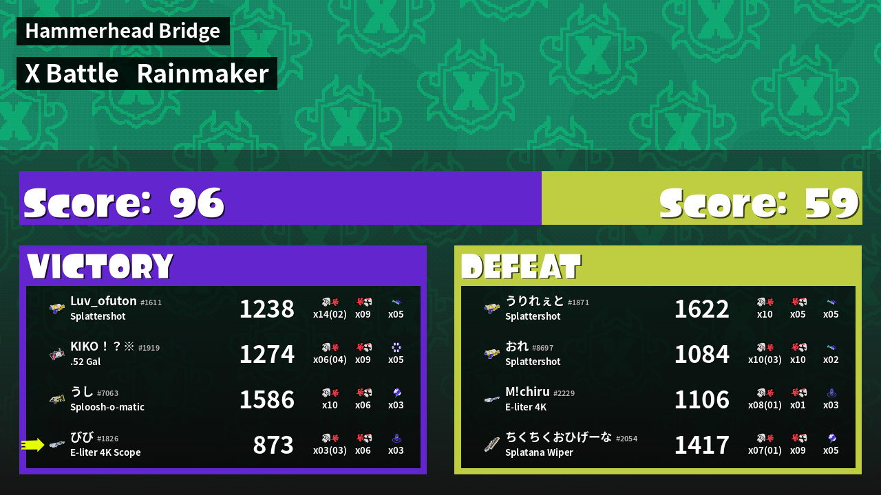 | Medals | #1 Wave Breaker User #2 Score Booster #2 Splat Assister | ||