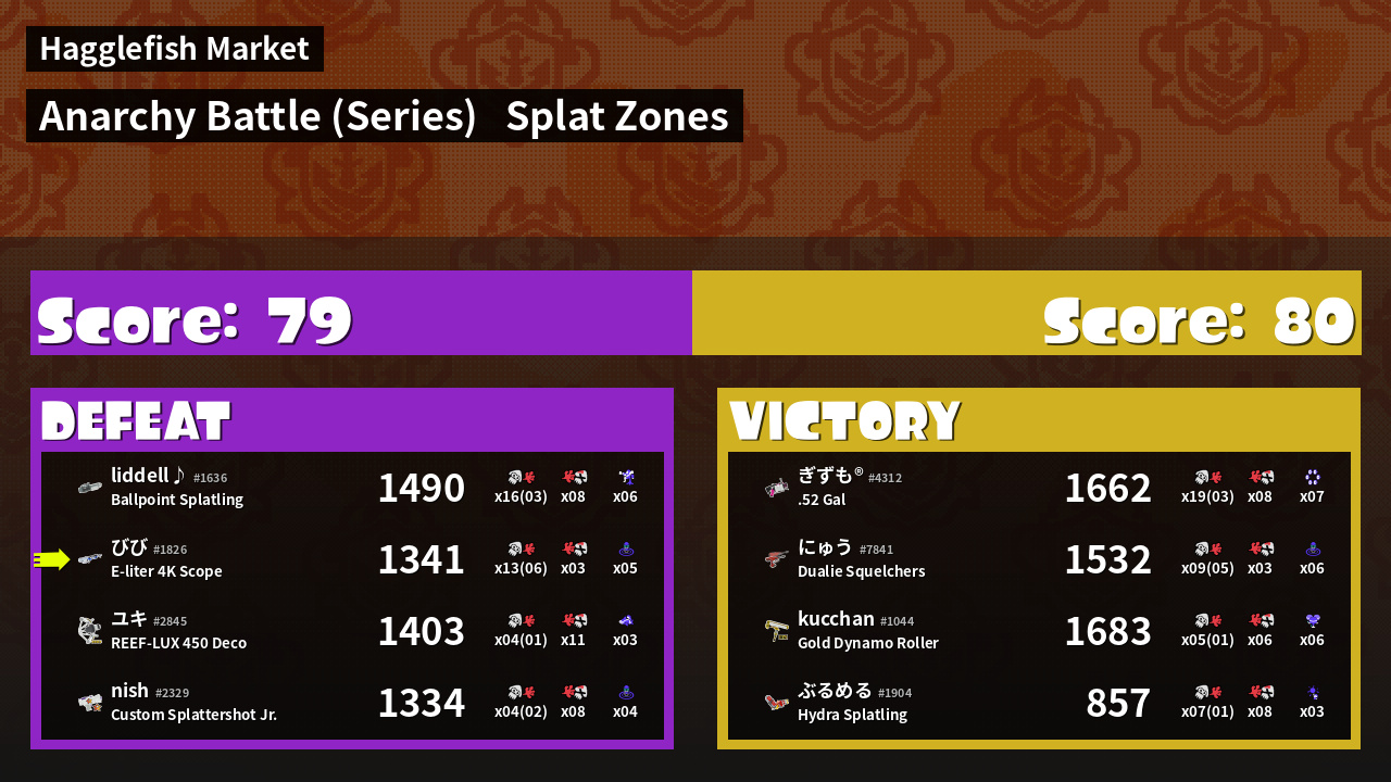 | Mode | Splat Zones - Anarchy Battle (Series) | ||