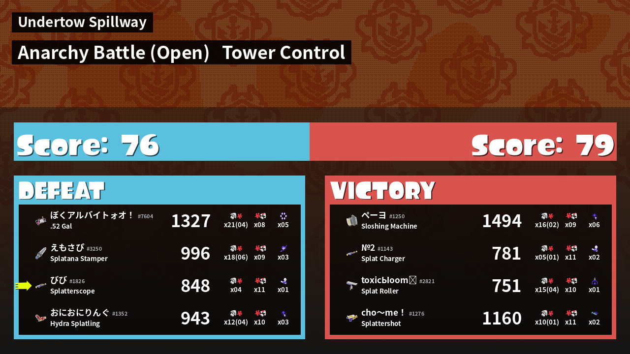 | Mode | Tower Control - Anarchy Battle (Open) | ||||