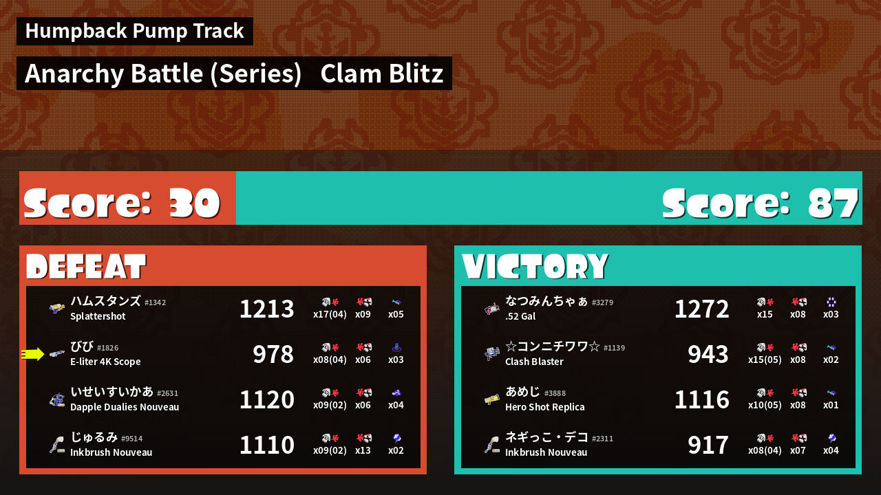 | Mode | Clam Blitz - Anarchy Battle (Series) | ||