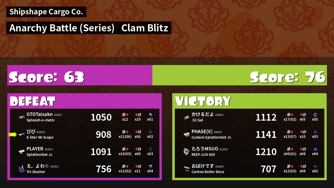 | Mode | Clam Blitz - Anarchy Battle (Series) | ||