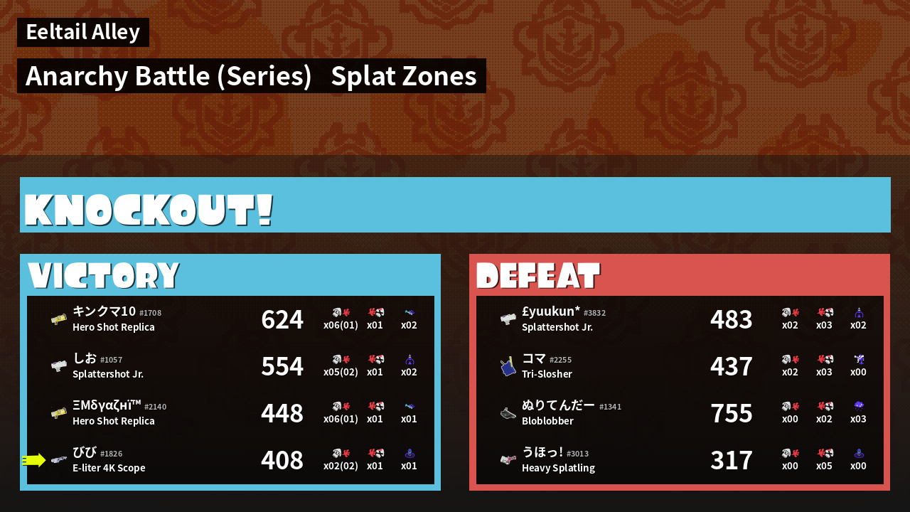 | Medals | #1 Splat Assister #1 Wave Breaker User | ||