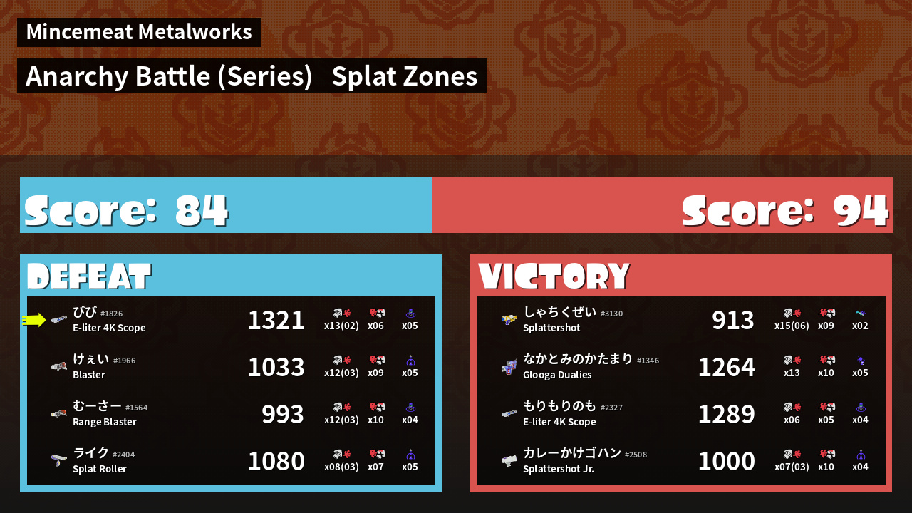 | Mode | Splat Zones - Anarchy Battle (Series) | ||