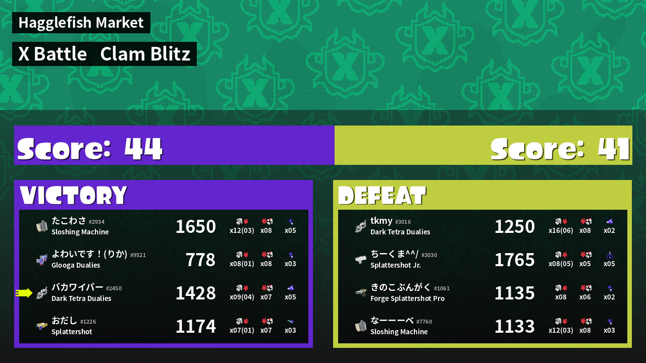 | Medals | #1 Splat Assister #1 Damage Taker #1 Ink Consumer | ||