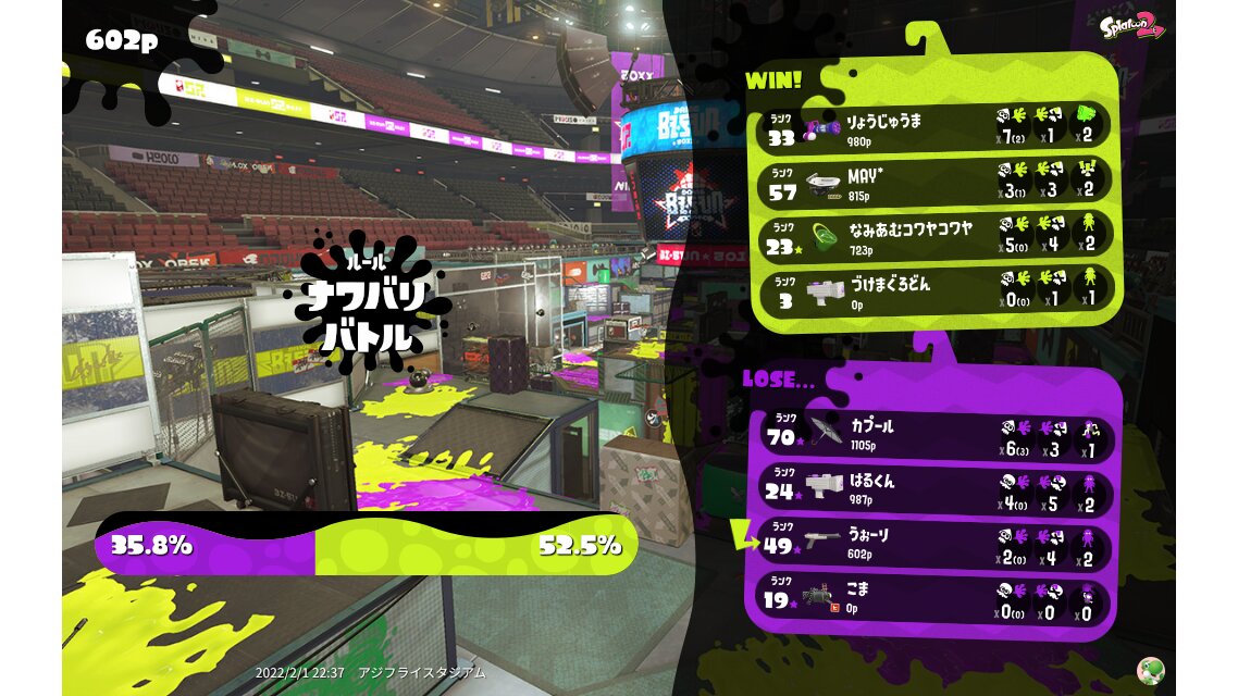| Mode | Turf War - Regular Battle | ||||||||||||||||||||||||||||