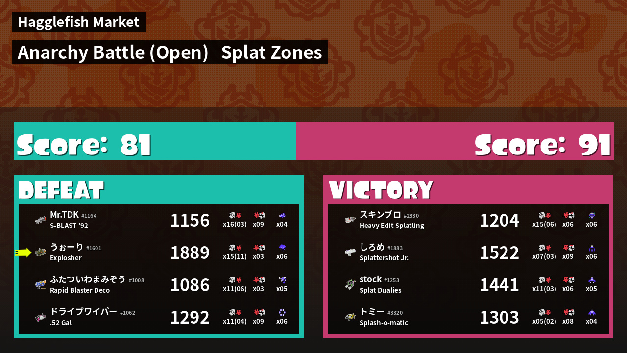 | Mode | Splat Zones - Anarchy Battle (Open) | ||