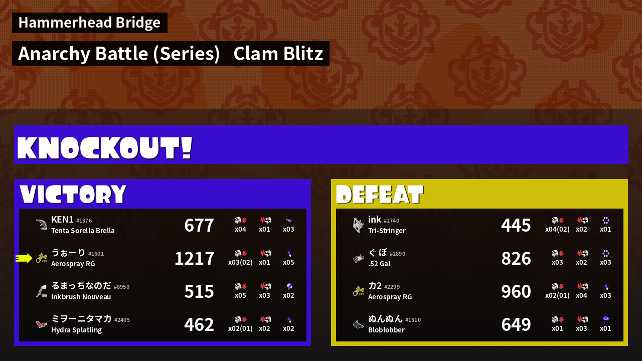Name | Weapon | Inked | ![]() |