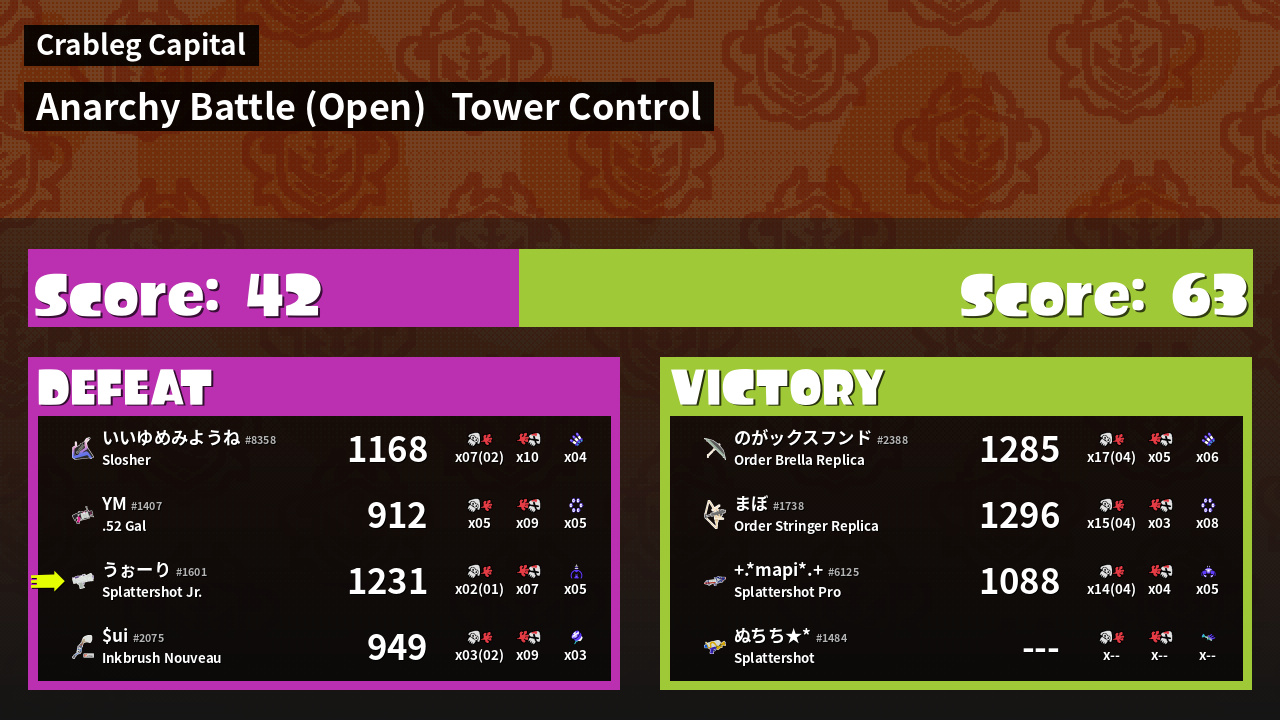 | Mode | Tower Control - Anarchy Battle (Open) | ||