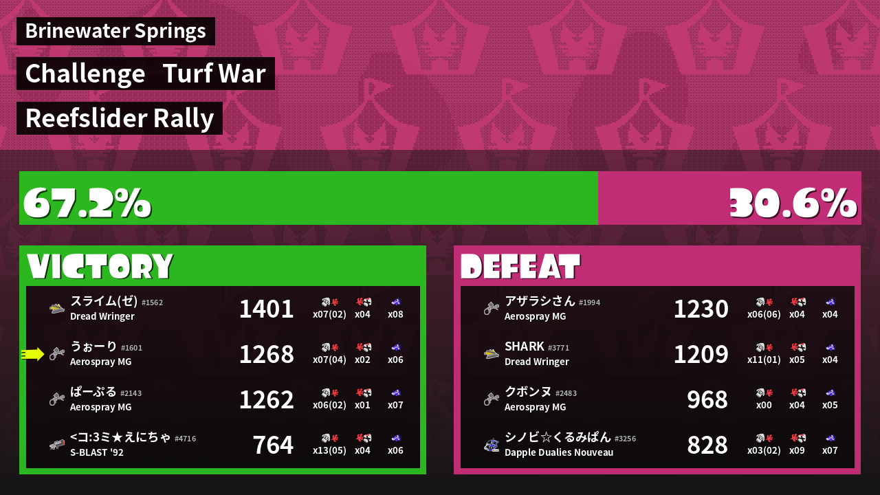 | Mode | Turf War - Challenge | ||