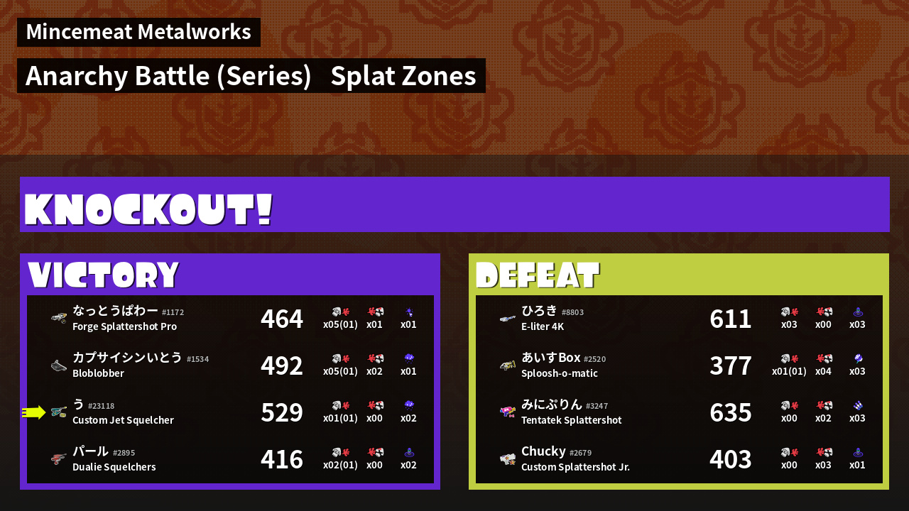 | Medals | #1 Splat Zone Inker #1 Turf Inker #1 Super Jump Spot | ||