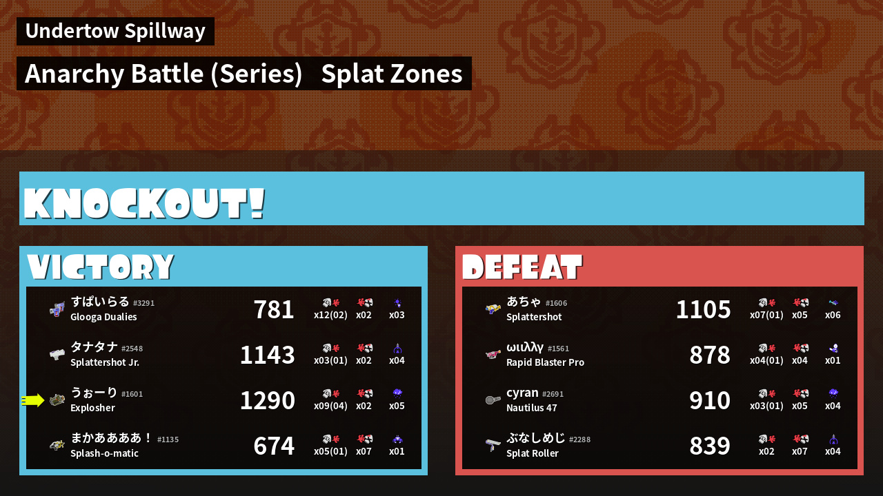 Name | Weapon | Inked | ![]() |