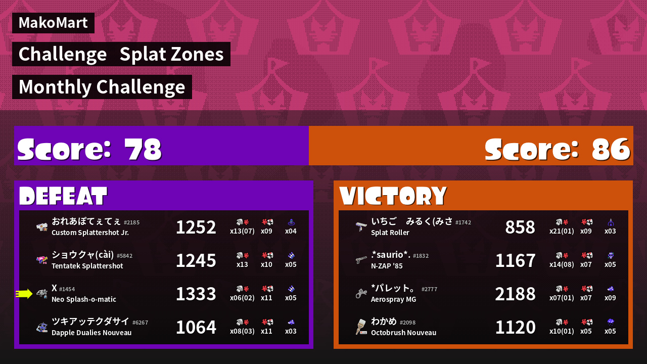 | Medals | #1 Splat Zone Inker #1 Turf Inker #1 Popular Target | ||