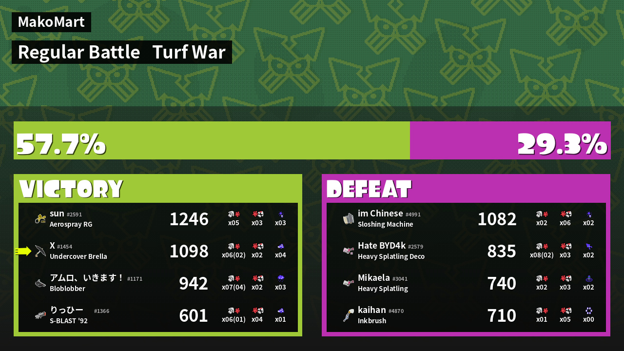 | Mode | Turf War - Regular Battle | ||