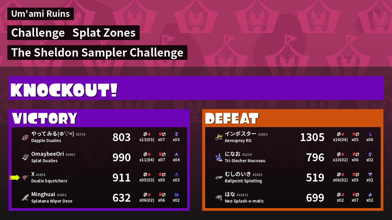 | Medals | #1 Super Jump Spot #1 Splat Zone Hero #1 Ink Consumer | ||
