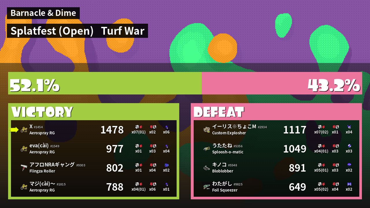 | Mode | Turf War - Splatfest (Open) | ||