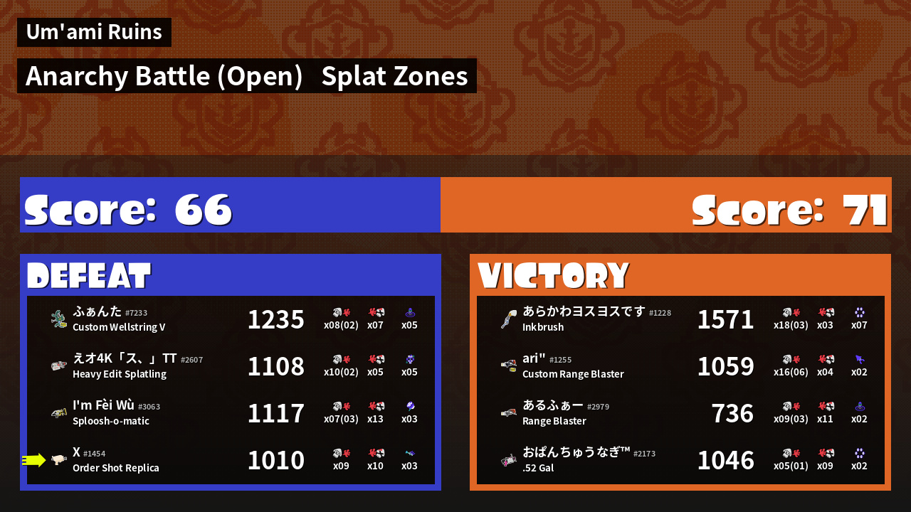 | Mode | Splat Zones - Anarchy Battle (Open) | ||