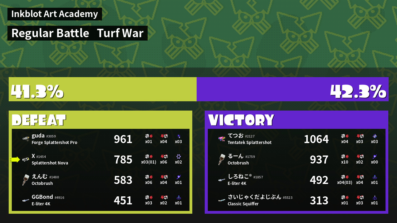 | Medals | #1 Popular Target #1 Enemy-Base Inker #1 Splat Assister | ||