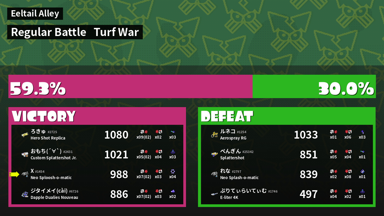 | Medals | #1 Splat Assister #1 Damage Taker #1 Ink Consumer | ||