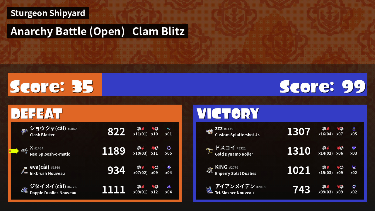 | Mode | Clam Blitz - Anarchy Battle (Open) | ||