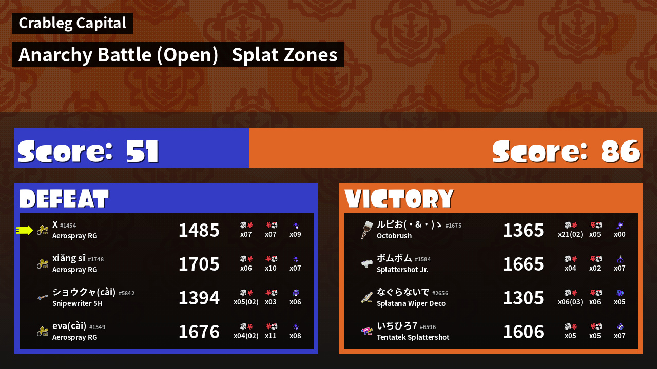 | Mode | Splat Zones - Anarchy Battle (Open) | ||