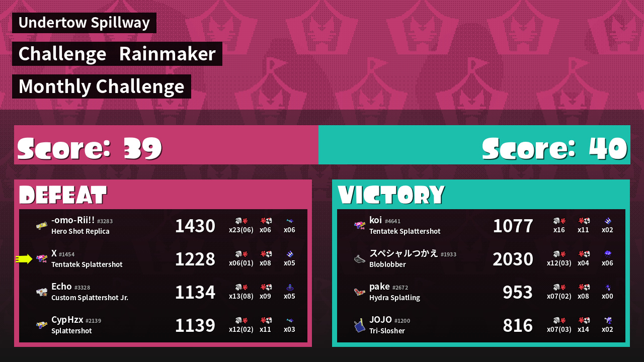 | Weapon | Tentatek Splattershot ( Splat Bomb / Triple Inkstrike) | ||