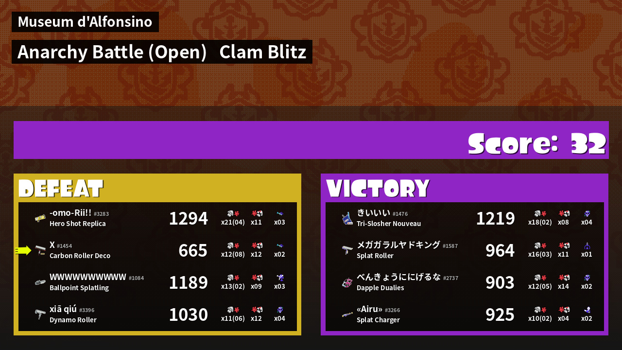 | Mode | Clam Blitz - Anarchy Battle (Open) | ||