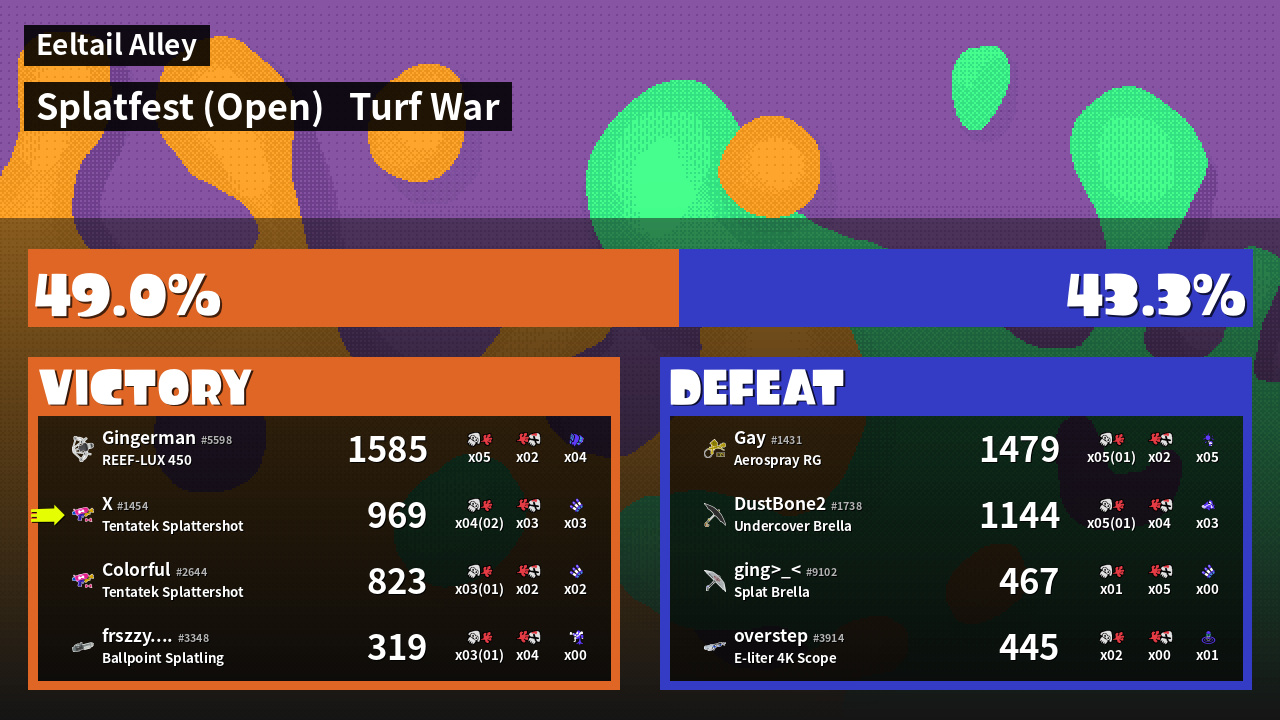 | Medals | #1 Splat Assister #1 Triple Inkstrike User #2 Overall Splatter | ||