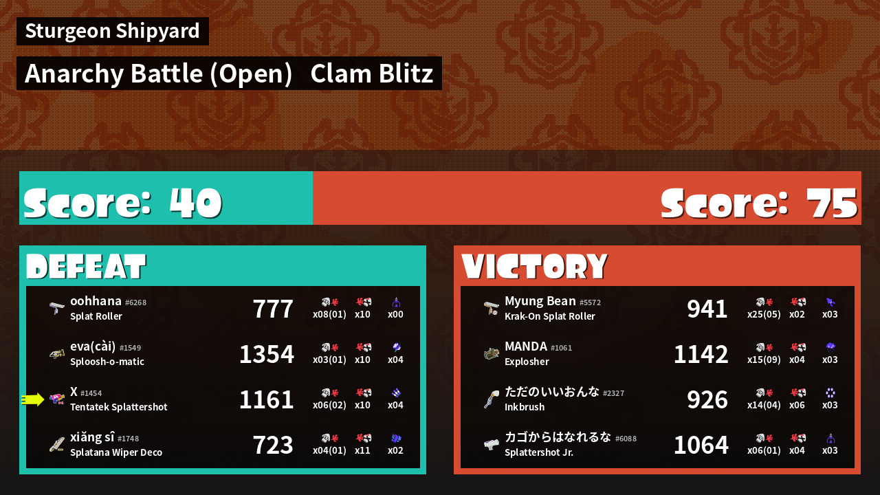 | Mode | Clam Blitz - Anarchy Battle (Open) | ||