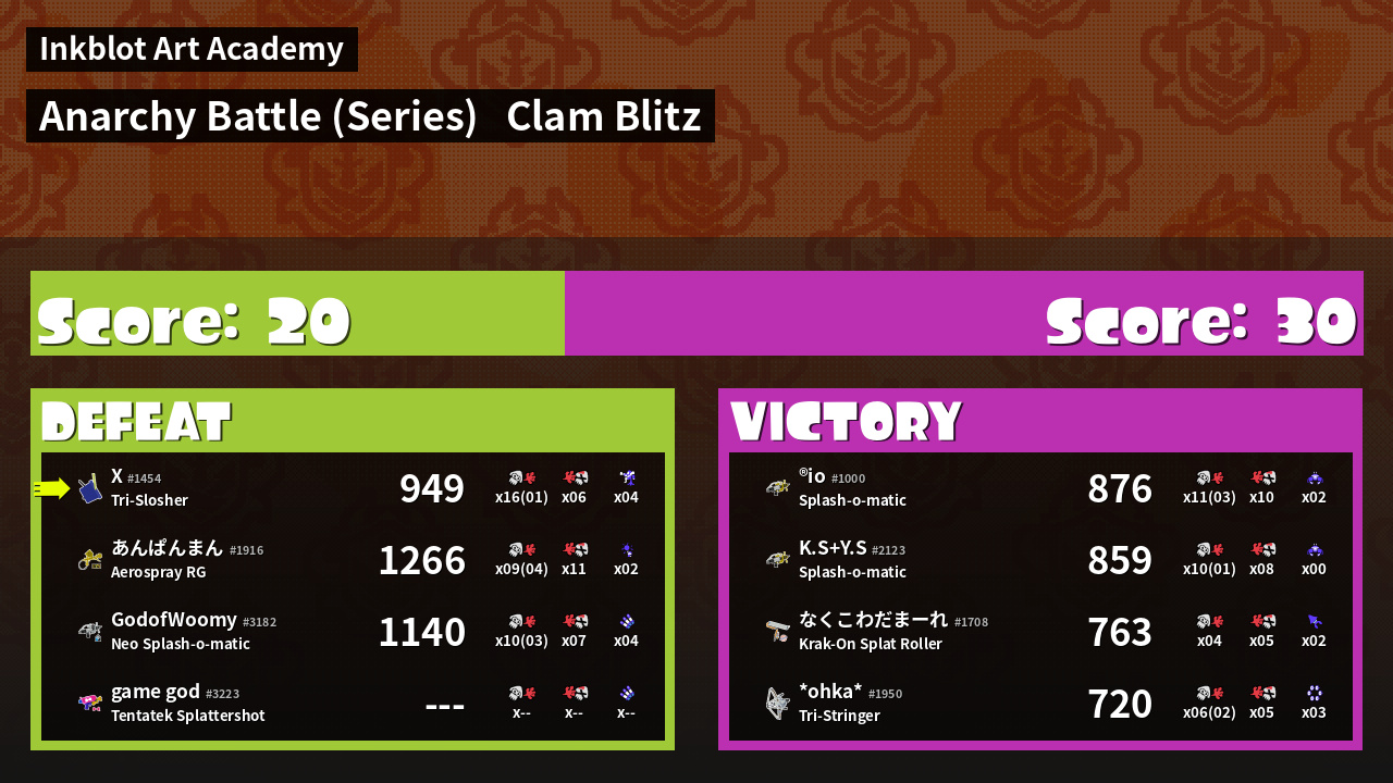 | Mode | Clam Blitz - Anarchy Battle (Series) | ||