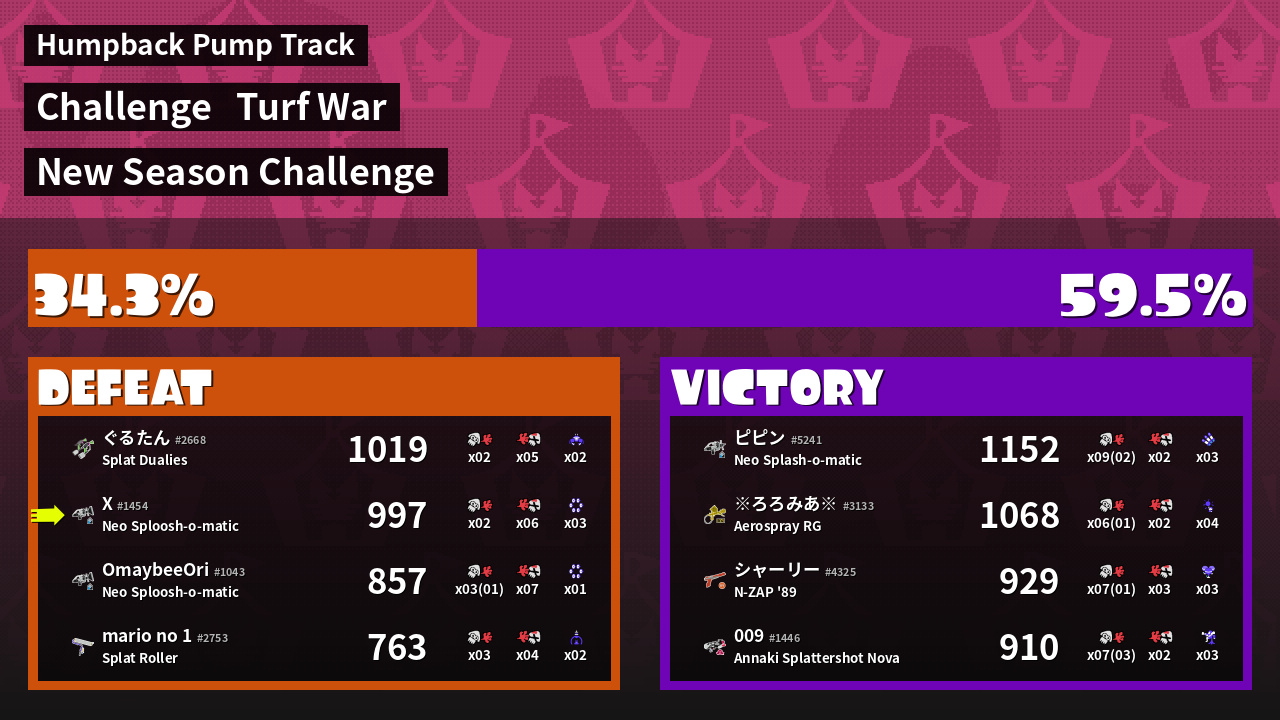 | Medals | #1 Enemy-Base Inker #1 Super Jump Spot #1 Ink Consumer | ||