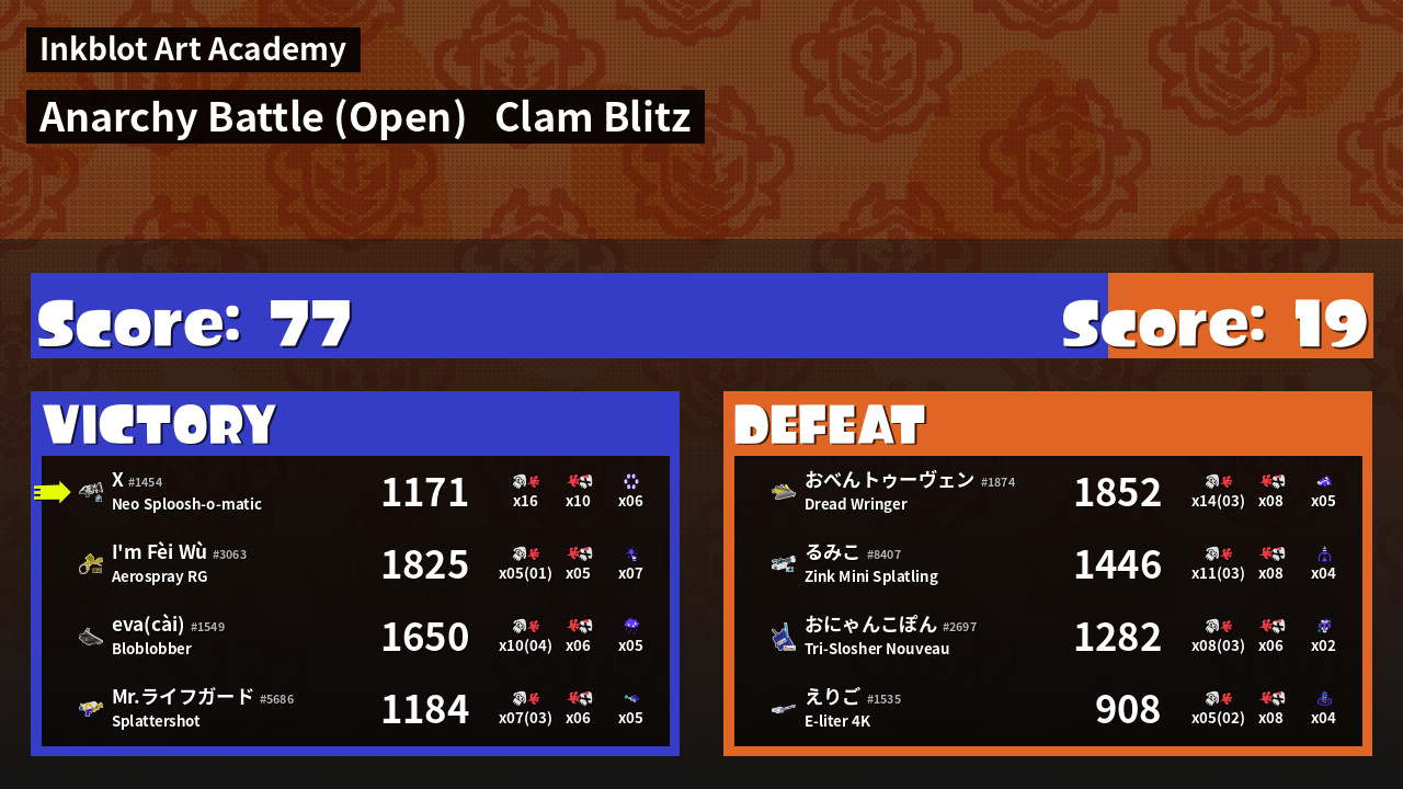 | Mode | Clam Blitz - Anarchy Battle (Open) | ||