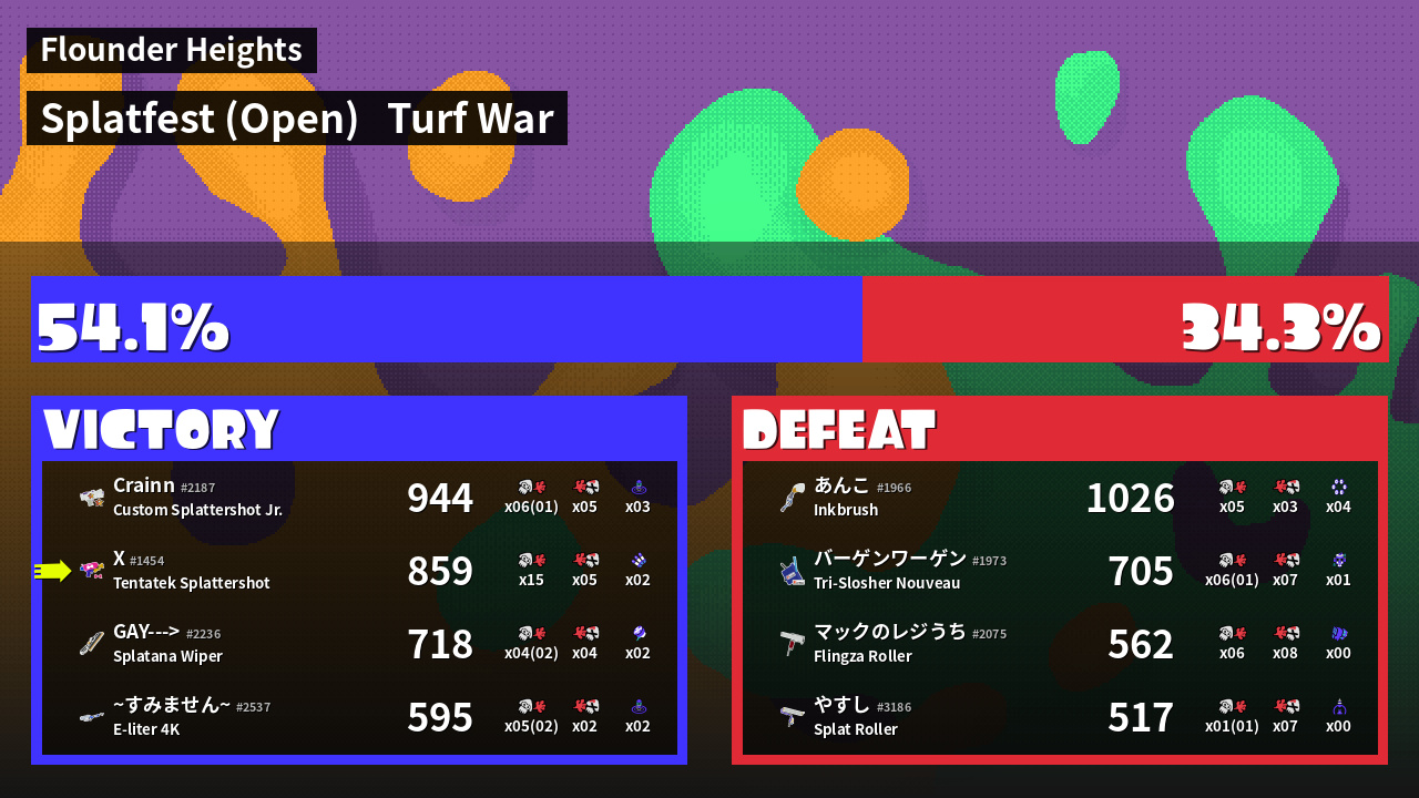 | Medals | #1 Overall Splatter #1 Popular Target #1 Enemy-Base Inker | ||