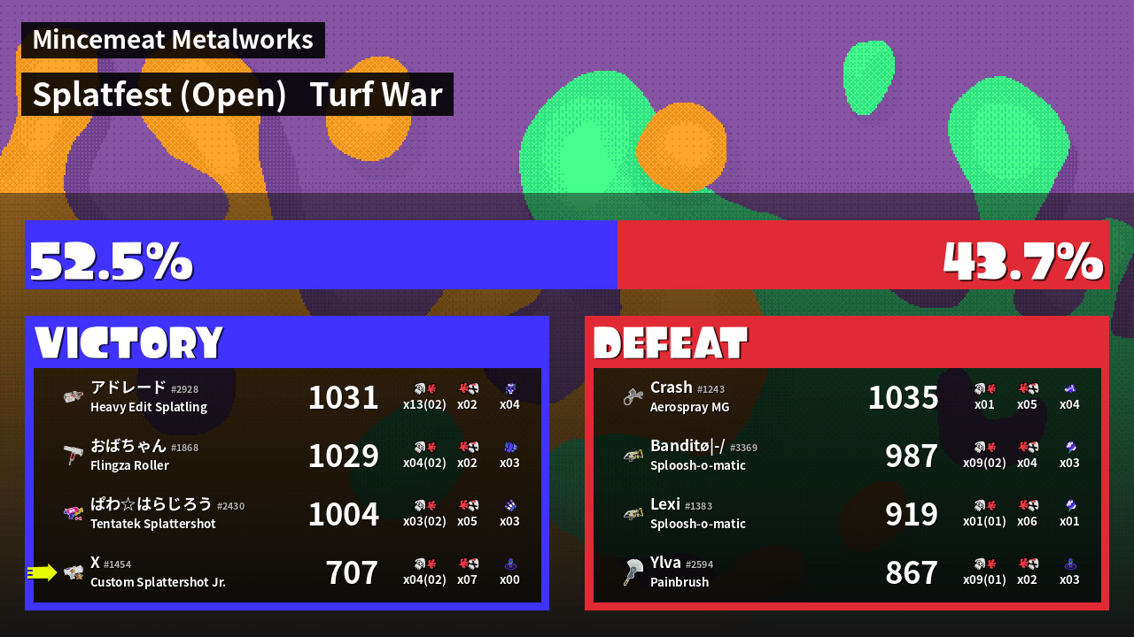 | Medals | #1 Splat Assister #1 Ink Consumer First Splat! | ||