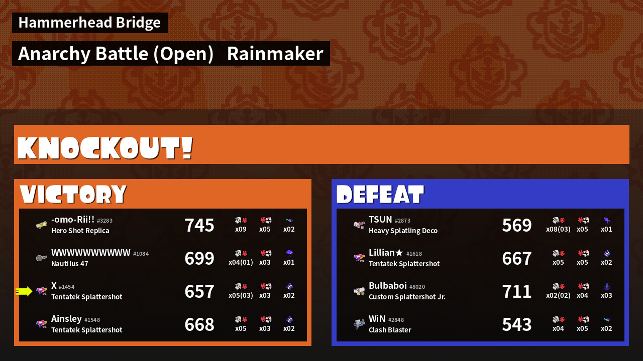 | Mode | Rainmaker - Anarchy Battle (Open) | ||