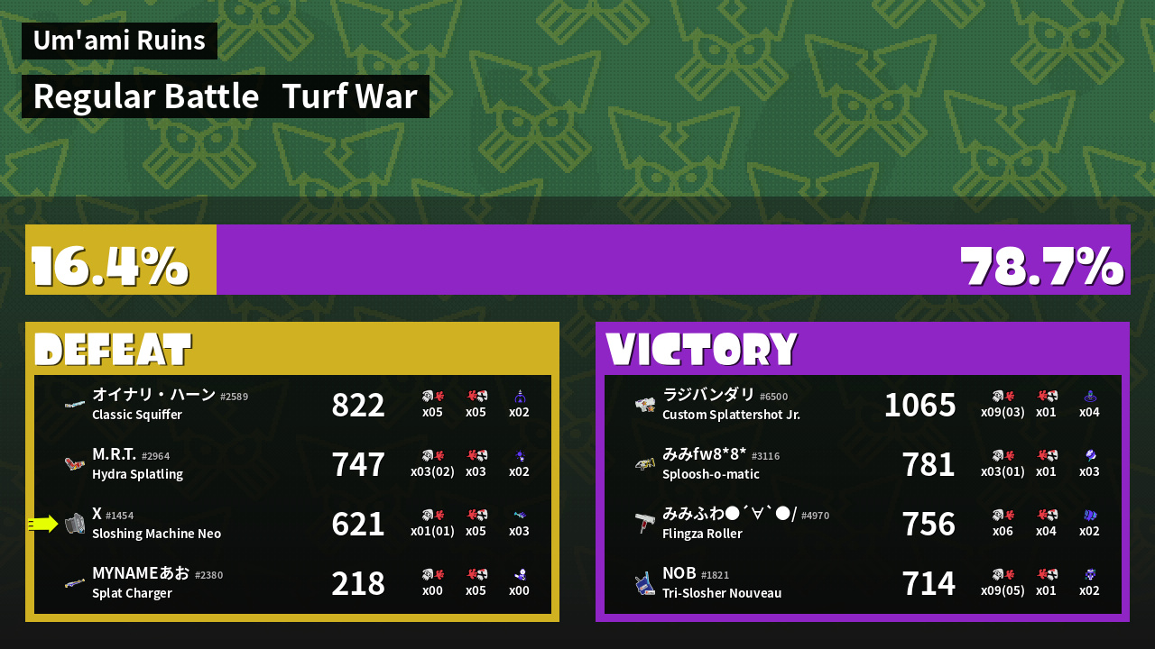 | Mode | Turf War - Regular Battle | ||