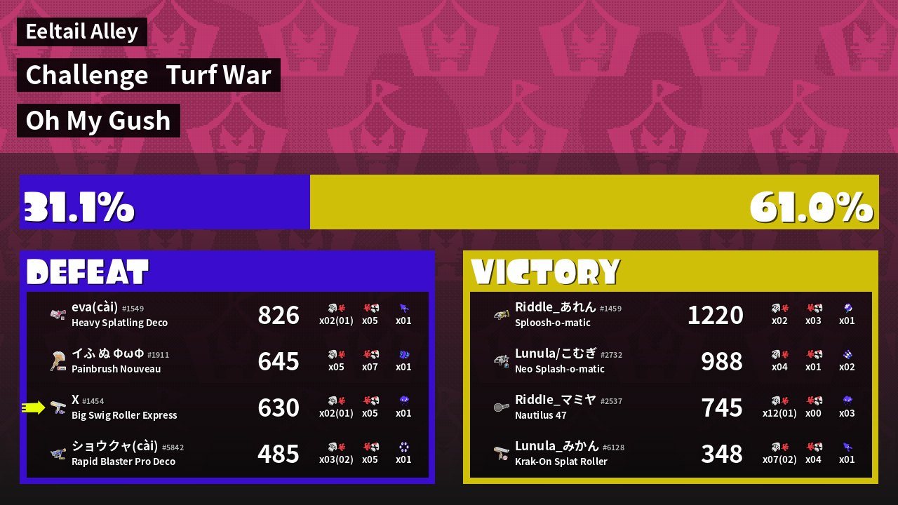| Medals | #1 Enemy-Base Inker #1 Ink Consumer #2 Home-Base Inker | ||