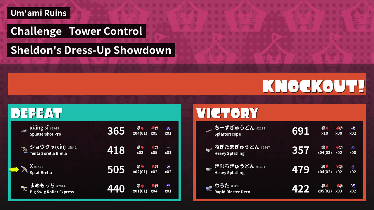 | Weapon | Splat Brella ( Sprinkler / Triple Inkstrike) | ||