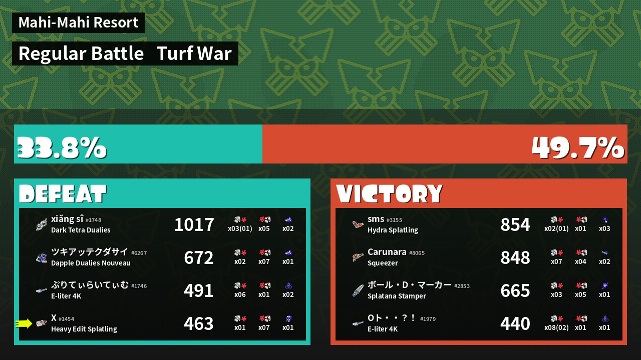 | Mode | Turf War - Regular Battle | ||