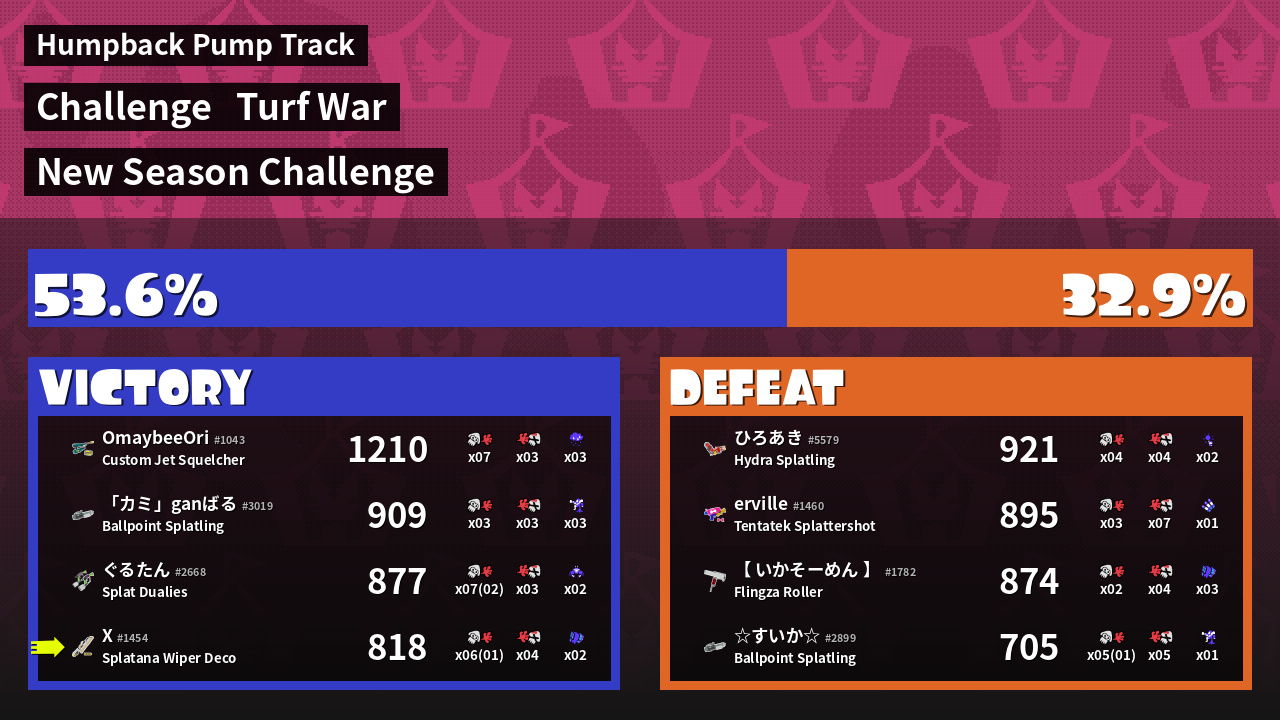 | Medals | #1 Ink Consumer First Splat! #1 Tenta Missiles User | ||