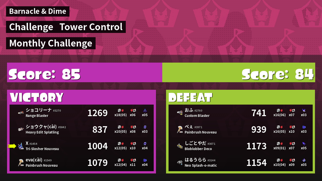 | Medals | #1 Splat Assister #1 Ground Traveler #1 Damage Taker | ||