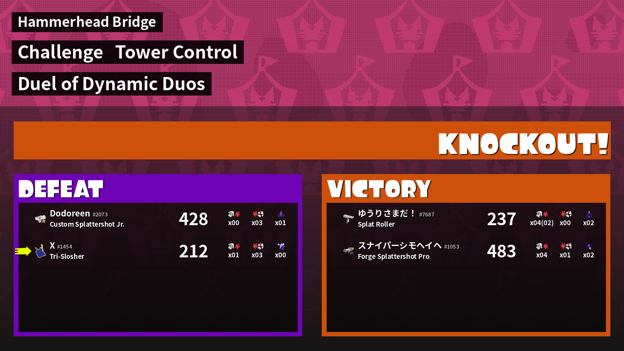 | Medals | #1 Overall Splatter #1 Enemy Splatter First Splat! | ||